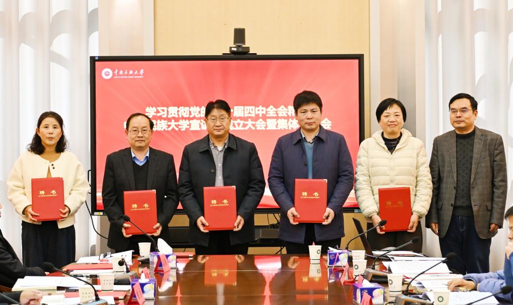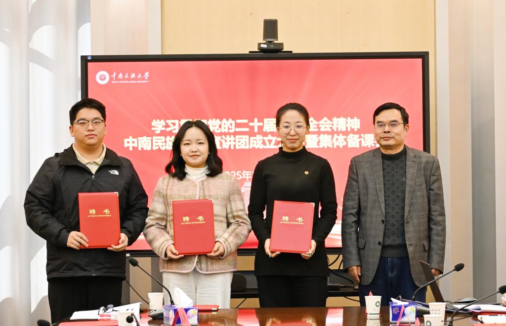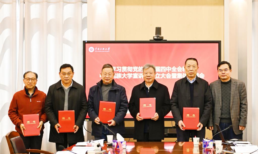 会上,马玉堂传达学习了国家民委党组、湖北省委关于学习贯彻党的二十届四中全会精神的相关文件精神,宣读了学校宣讲团、“银龄”宣讲团、青年学生宣讲团成员名单。徐业勤为学习贯彻党的二十届四中全会精神中南民族大学宣讲团成员颁发聘书。