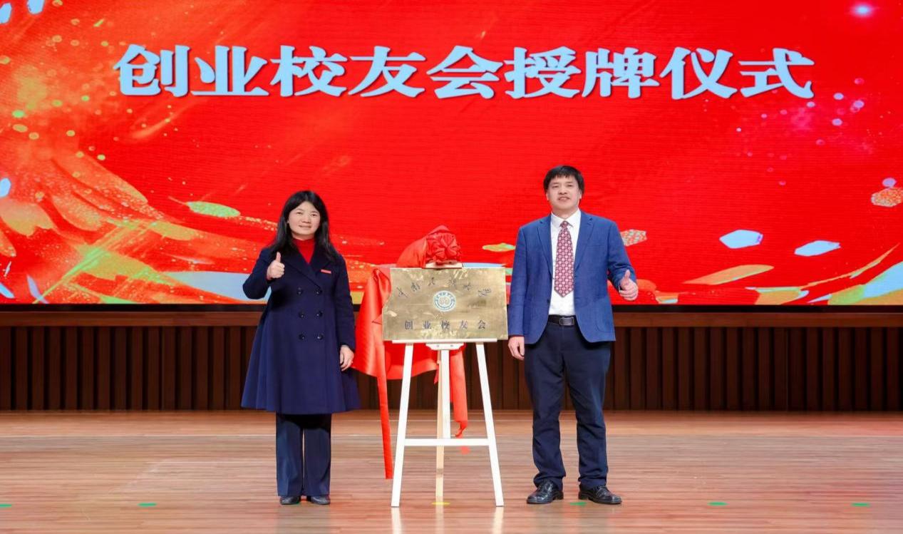 会上,学校创业校友会正式成立。李红燕为创业校友会授牌,覃瑞为校友会顾问颁发聘书。