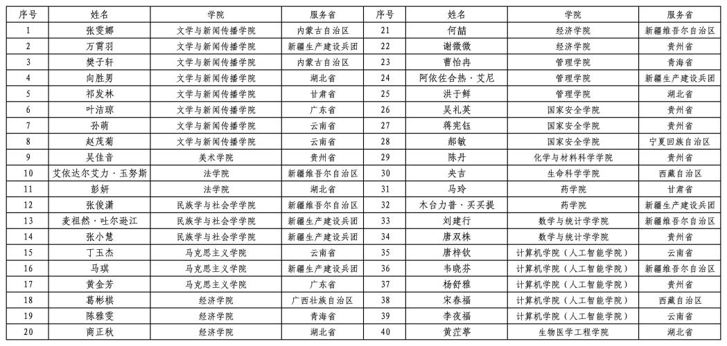 此外,全国大学生志愿服务西部计划项目管理办公室公布了2024—2025年度大学生志愿服务西部计划考核等次优秀志愿者名单,我校40名青年学子名列其中。