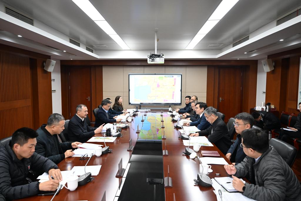 12月5日上午,校党委书记徐业勤,党委副书记、校长刘义率队赴武汉市东湖高新区座谈交流,深化校地合作。东湖高新区党工委副书记、管委会主任余松,党工委委员艾传荣以及有关部门负责同志,我校党政办公室、国有资产与实验室管理处、基建处、后勤保障处、未来城科技园管理办公室等单位相关人员参加座谈交流。
