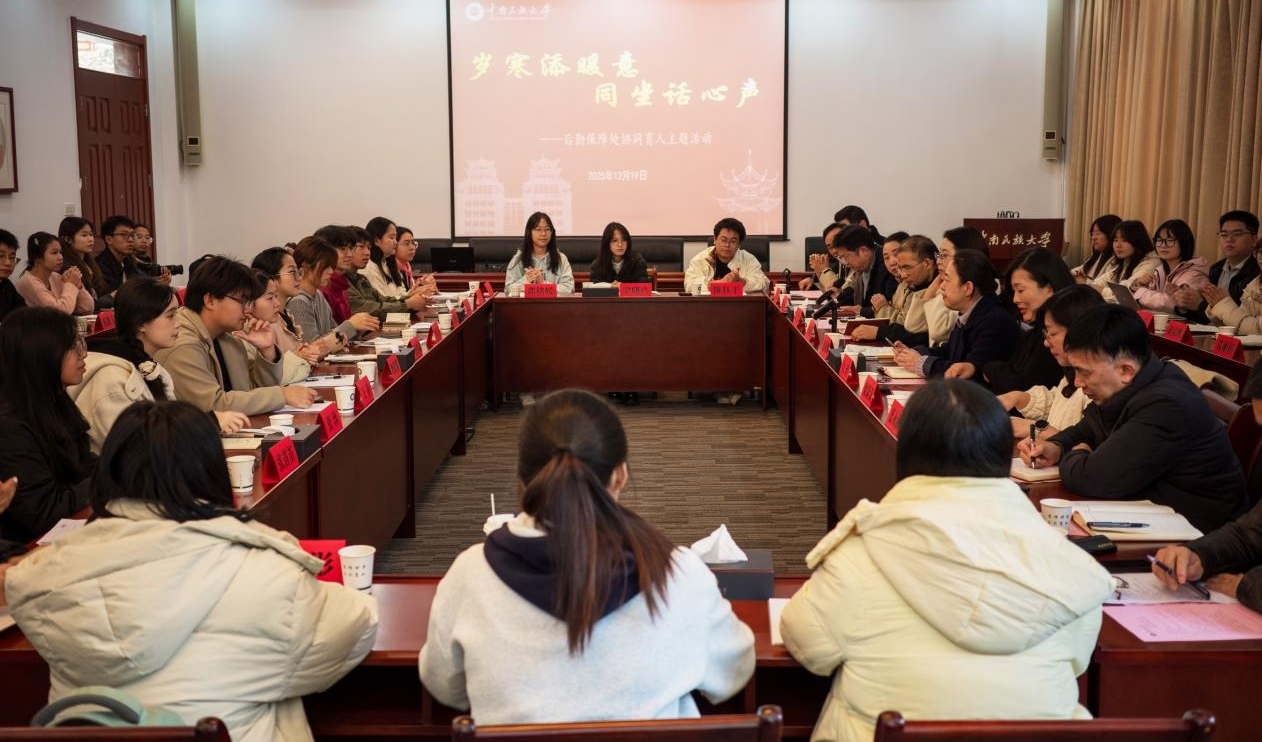 12月19日下午,后勤服务协同育人活动在国际学术会议中心举行。学生代表与各食堂管理员齐聚一堂,共话后勤服务发展,同迎冬至传统佳节。校党委常委、总会计师包莉娜,校团委、后勤保障处负责人参加此次座谈会。会议由后勤保障处副处长陈冬主持。