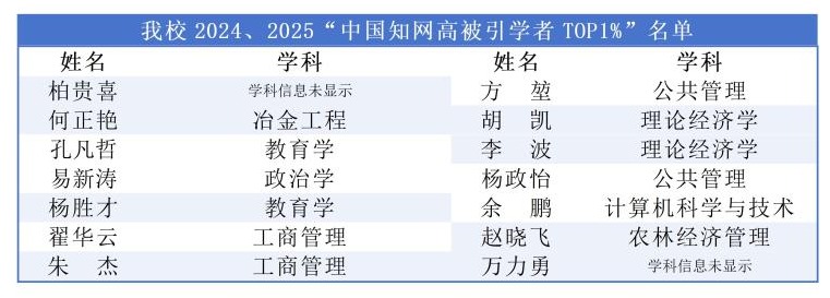 12月12日,中国知网(CNKI)下属的中国科学文献计量评价研究中心(简称“知网评价中心”)正式发布“2025全国高被引学者”名单。我校共有80名教师入选,其中14人连续两年荣登“中国知网高被引学者TOP1%”榜单。详情如下:
