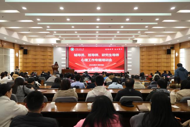1月8日下午,学校举办辅导员、班导师、研究生导师心理工作专题培训会。武汉大学心理学系教授、博士生导师喻丰应邀作专题报告。培训采用“主会场集中授课+分会场同步直播”的形式进行,校党委常委、副校长李红燕,各学院学生工作负责人、分管研究生工作副院长、研究生导师、本预科生及研究生辅导员、班导师参加会议。