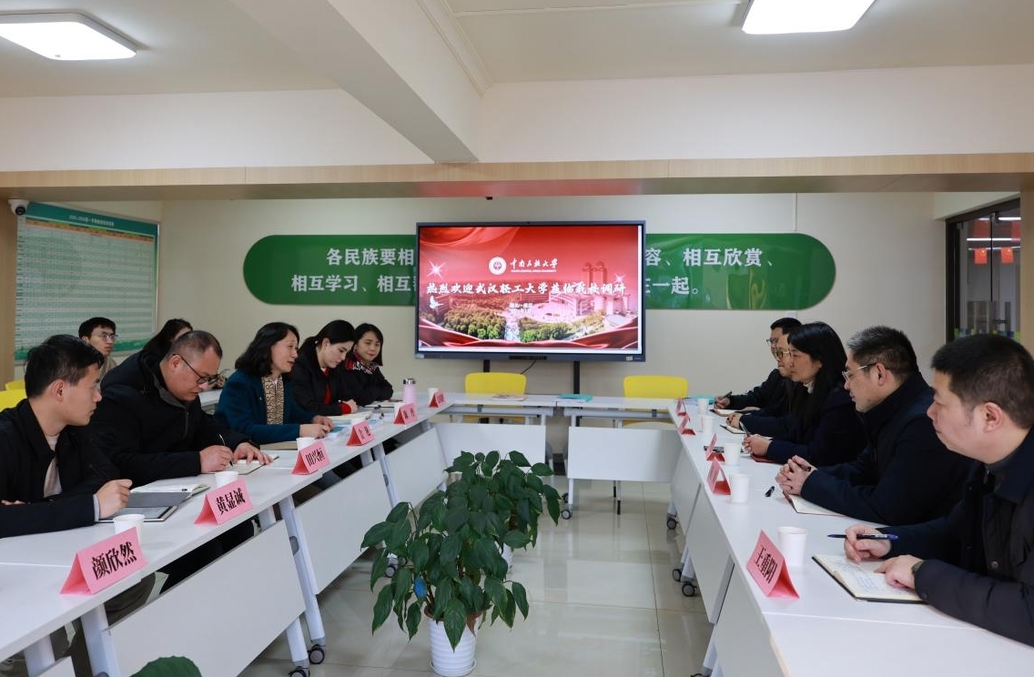 1月14日,武汉轻工大学党委副书记、副校长金艳一行来我校调研交流,并参观了我校“一站式”学生社区。校党委常委、副校长李红燕及两校学工部负责人参加座谈会,会议由校党委学生工作部部长杨涛主持。