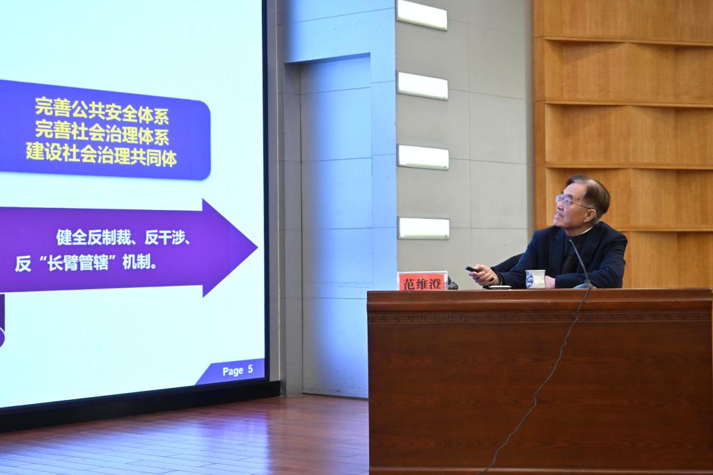 1月20日上午,南湖大讲坛第七十讲举行。应我校国家安全学院邀请,中国工程院院士、国务院学位委员会“国家安全学”学科评议组召集人、清华大学公共安全研究院院长范维澄教授来校,为师生作题为《推进高水平安全的思考与实践》的专题讲座。现场座无虚席,国家安全学院、电子信息工程学院、计算机学院、管理学院、经济学院、法学院等学院师生积极参加。