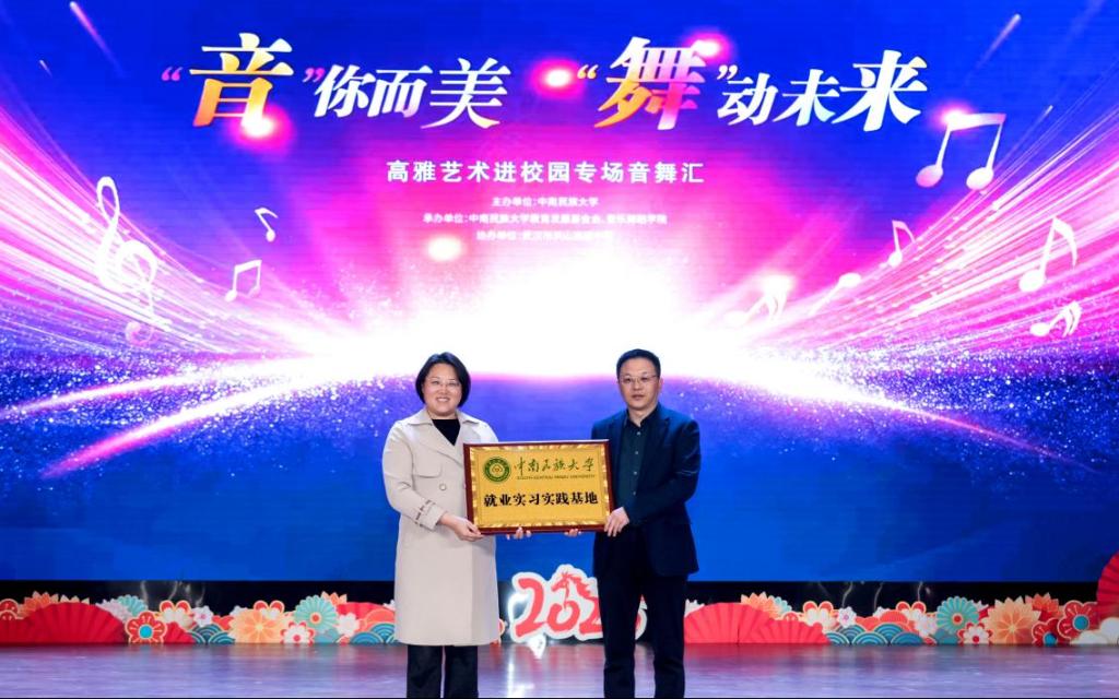 实习实践基地授牌仪式同步举行,覃瑞向陈鸣颁发实习实践基地牌匾。我校基金会以此为纽带,为音乐舞蹈学院学生搭建“专业实践+公益服务”的双轨平台,与洪山高中共同探索高校与高中协同育人的新路径。