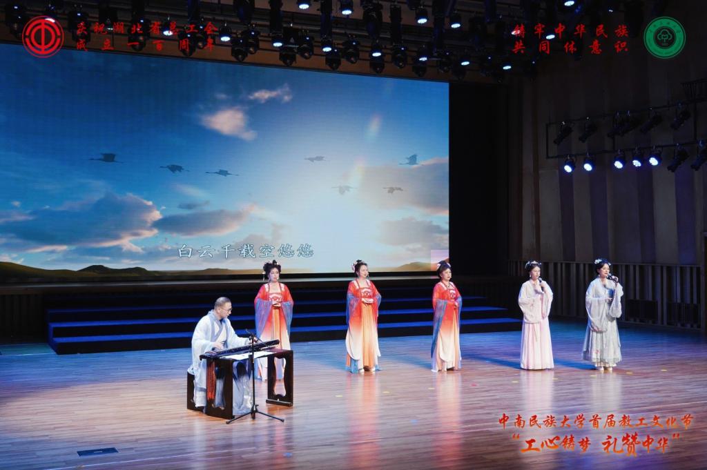 春和景明启新程,工心铸梦向未来。3月27日晚,我校首届“工心铸梦礼赞中华”教工文化节开幕式暨教职工文艺汇演在光谷音乐厅举行。校党委副书记、校长刘义,校党委副书记、副校长、工会主席宋发军,各基层工会主席、教职工代表齐聚一堂,共赴这场属于民大教职工的文化盛宴。