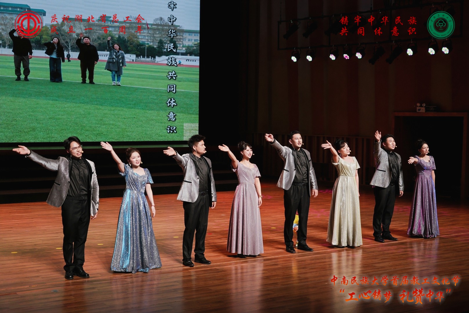 汇演现场,平日里潜心治学的老师们化身艺术使者,用歌声、舞姿、诵读等多种形式,展现了民大教职工的别样风采与家国情怀,赢得了现场观众的阵阵掌声。