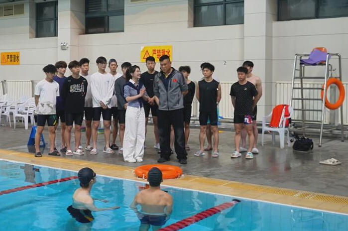 实景实操教学是此次公开课的重点。在我校游泳馆设置了第二现场,由专业老师开展防溺水实景教学,手把手传授溺水自救、科学救援的实用技能,让每一位参与的同学都能学有所获、学以致用。武汉市东湖高新区民警则带来防踩踏实训,讲解演示危急时刻的自救互救姿势,现场师生认真学习、积极模仿,纷纷表示“这些技能关键时刻能救命”。