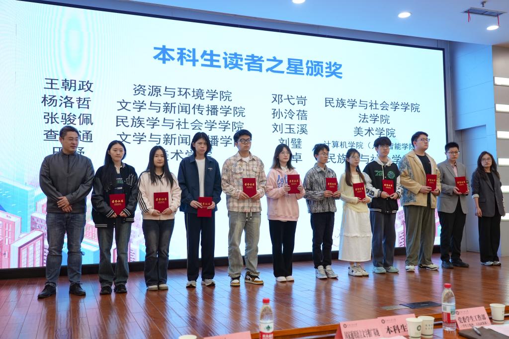 活动发布了《2025年度阅读报告》以及2025年度“读者之星”“书香学院”获奖名单,相关职能部门负责人为“读者之星”“书香学院”颁奖,刘义为知识产权信息公共服务网点专家颁发聘书。