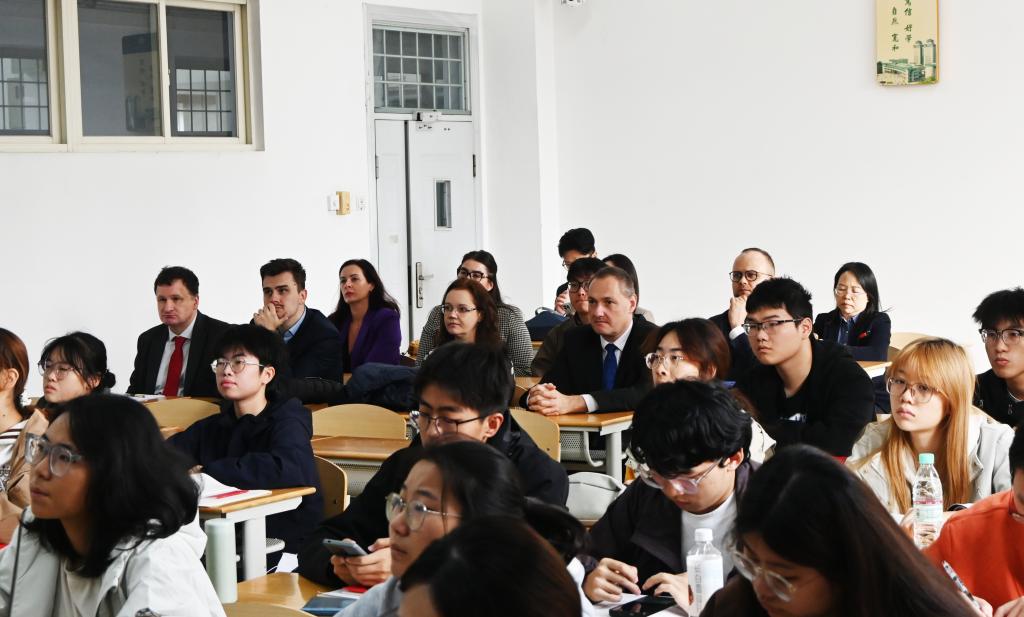 12日下午,夸美纽斯大学法学院代表团旁听了法学院涉外法治实验班的宪法学课程。课程以双语授课的形式进行,充分展现了国际化人才培养特色。代表团对课程设计、师生互动及学生跨文化表达能力给予肯定,课后与授课教师、学生代表围绕教学模式、课程设置等话题作了简短交流。