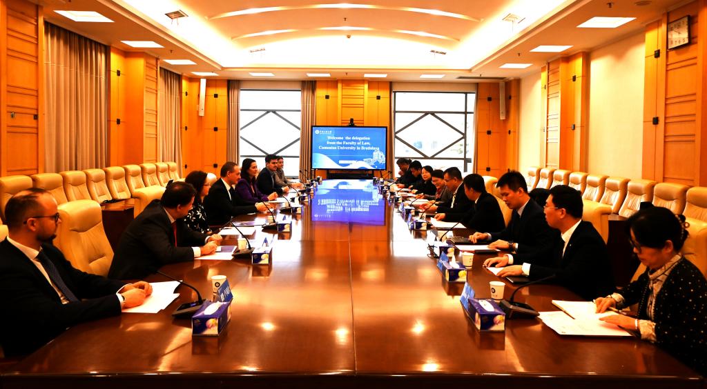 11月12日至13日,斯洛伐克布拉迪斯拉发夸美纽斯大学法学院院长爱德华·布尔达教授、副院长利维娅·特雷洛娃教授一行7人来访我校,与法学院开展为期2天的调研交流活动。