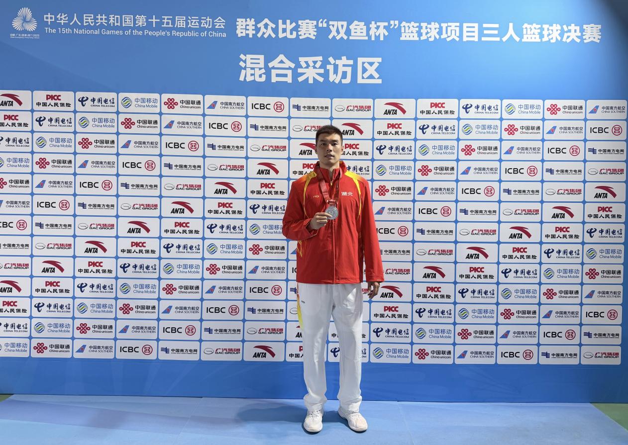 11月17日,第十五届全国运动会群众比赛三人篮球项目在天河体育中心举行。我校体育学院教师陈佳贺代表湖北省出征,与队友携手并肩、奋勇拼搏,历经多轮激烈角逐一路闯入决赛,最终凭借扎实的技战术水平和顽强的斗志斩获男子组亚军,为湖北争光,更为学校赢得了荣誉。