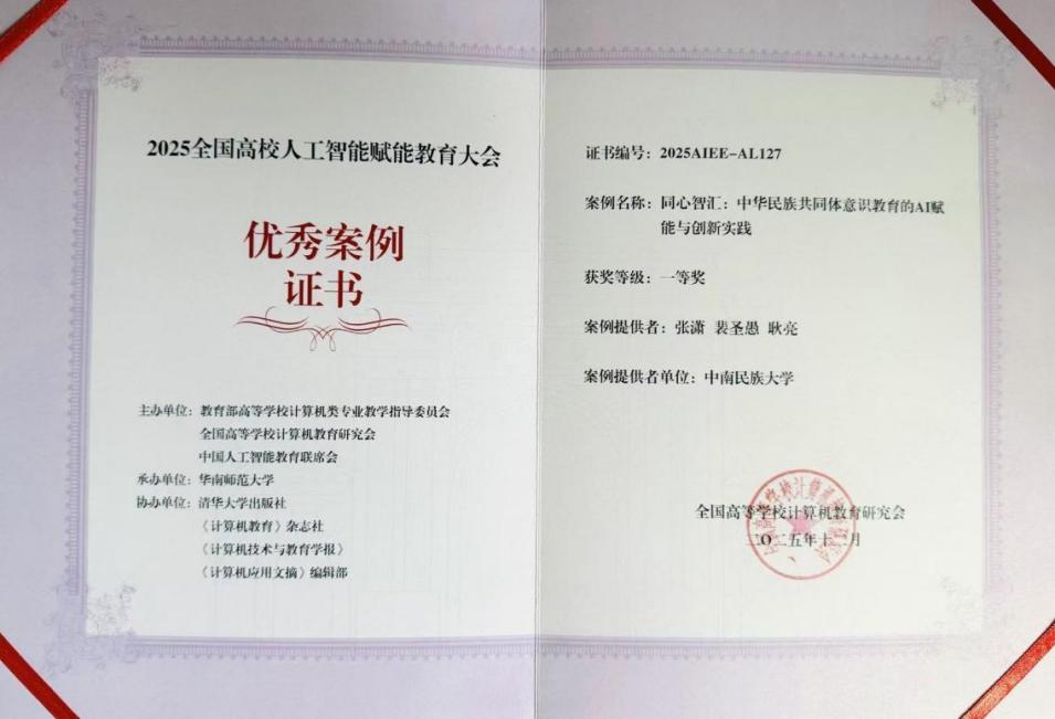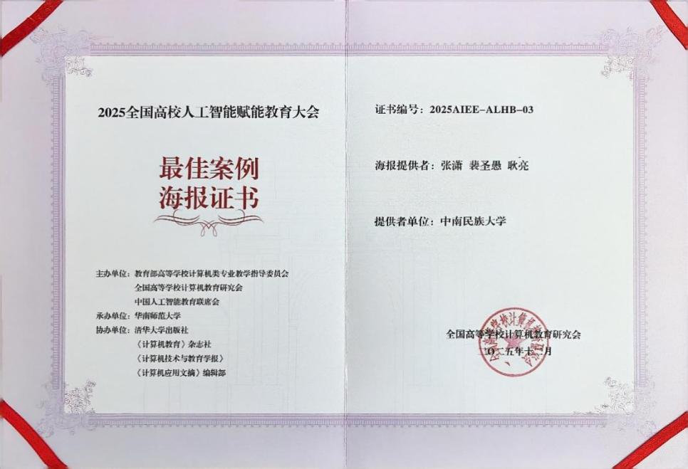 12 月 19 日至 21 日,由教育部高等学校计算机类专业教学指导委员会、全国高等学校计算机教育研究会及中国人工智能教育联席会联合主办的2025全国高校人工智能赋能教育大会在华南师范大学举行。在此次大会的案例与成果评选中,我校报送的多项人工智能赋能教育教学成果凭借突出的创新性与显著的实践成效,斩获两项优秀案例全国一等奖和最佳案例海报奖。