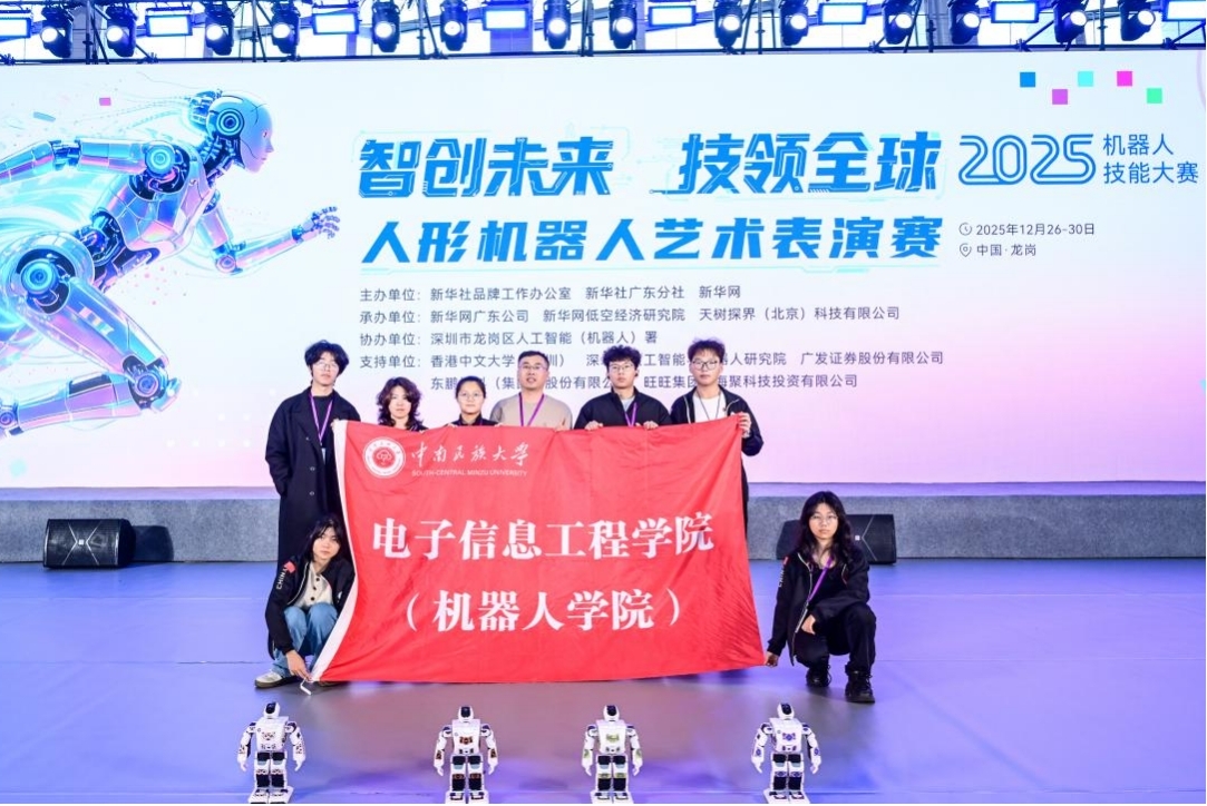 自12月报名以来,学院领导高度重视,由郑礼洋老师指导、吴兆桐老师领队,12名学生组建3支代表队参赛。经过初赛角逐,3支队伍全部晋级,于12月28日赴深圳参加决赛,最终在人形机器人艺术表演赛道斩获殊荣。