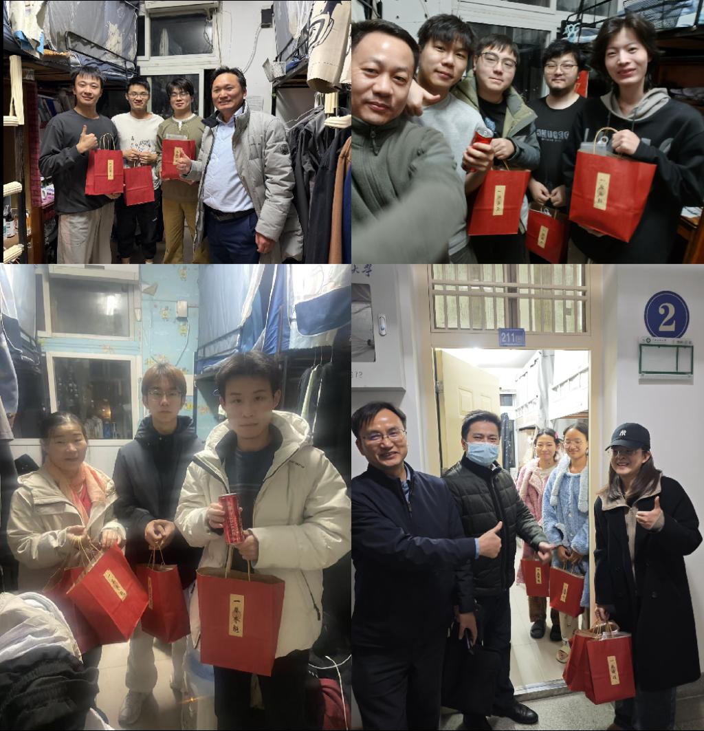 12月5日晚,化学与材料科学学院“研途送暖”活动温情启幕,学院班子成员、2022级全体班导师、师生党员代表走进学生宿舍,为即将考研的学子送上定制“暖心考研大礼包”,传递学院的关怀与期许。