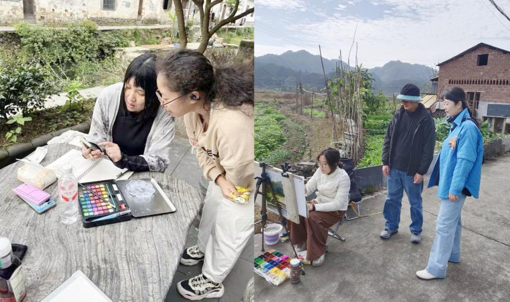 美术学专业学生胡美瑶分享道:“这次写生让我深刻体会到,‘现场’所带来的震撼是画室里无法复制的。我学会了不只是描绘目之所及,更尝试去表现心之所感的徽州。”