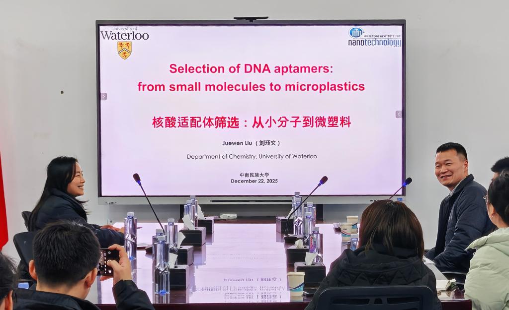 12月22日,加拿大滑铁卢大学刘珏文教授应邀来校作题为“适配体筛选:从小分子到微塑料”的专题讲座,药学院教师以及博硕研究生、本科生代表到场聆听并进行深入交流。讲座由药学院院长付海燕主持。