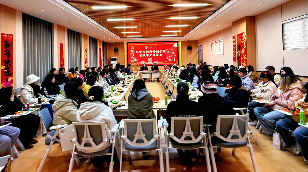 岁末添暖,年味渐浓。为做好寒假留校学生的保障服务,1月24日,文学与新闻传播学院召开寒假留校学生座谈会。学院党委书记钱文彬、副书记艾力亚尔·克里木,全体辅导员及留校学生参加座谈会。