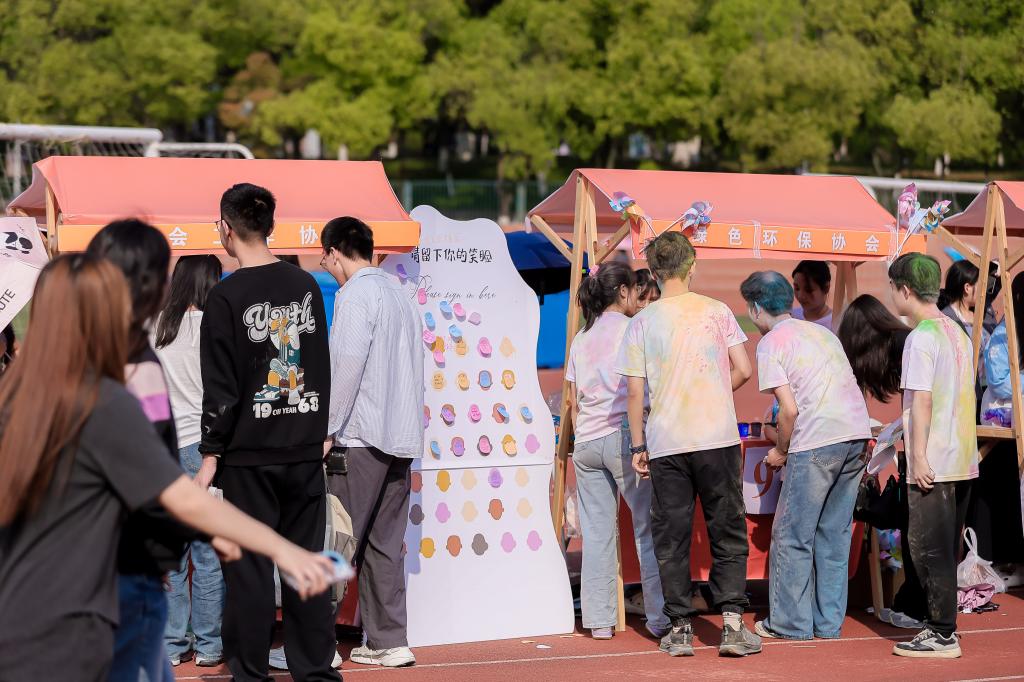 同学们在社团摊位前参与特色活动。校团委供图