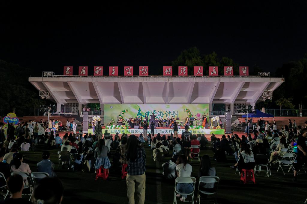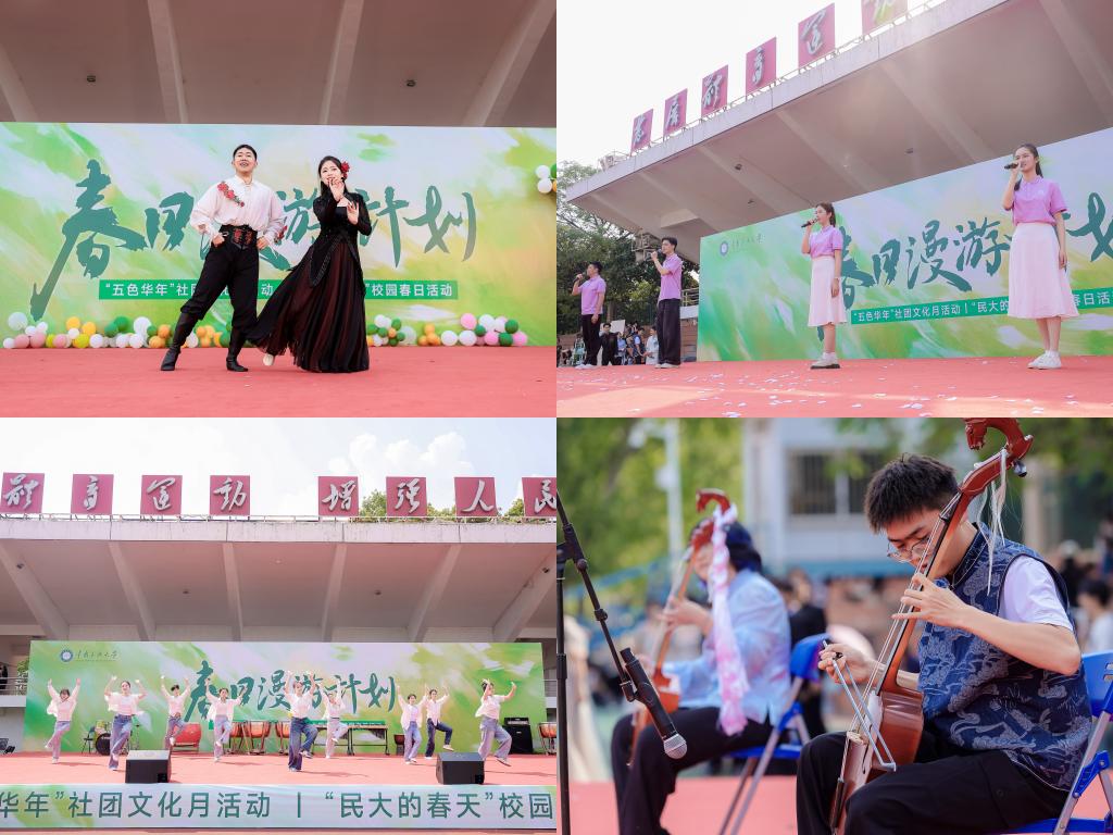 4月18日,“春日漫游计划”系列活动在南湖中心运动场举行。此次活动由校团委主办,校研究生会与学生社团指导中心联合承办。活动融合“五色华年”社团文化月展示活动与“民大的春天”校园春日活动两大板块,两千余名师生共赴一场兼具文化底蕴与青春气息的春日盛会。