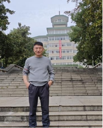 马新生参加毕业30周年活动在文一楼前留影。