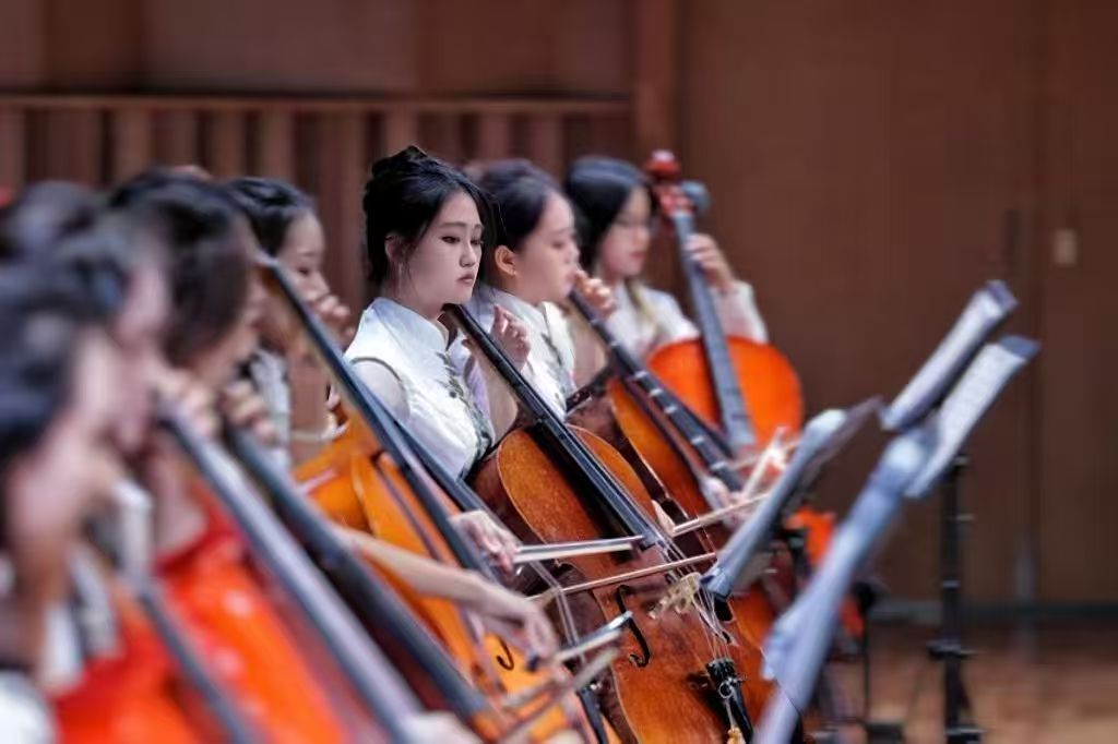 当楚之澜民族管弦乐团副团长的担子落在肩上时,这个初接重任的姑娘,在音乐舞蹈学院尹玲珑学姐的帮助下快速成长——从核查乐器购买清单的每个小数点,到光谷音乐厅专场演出时统筹多声部协作,她领悟到团队协作的精髓:“如同演奏复调乐章,每个声部既要精准定位节奏,更需交融为和谐整体。”