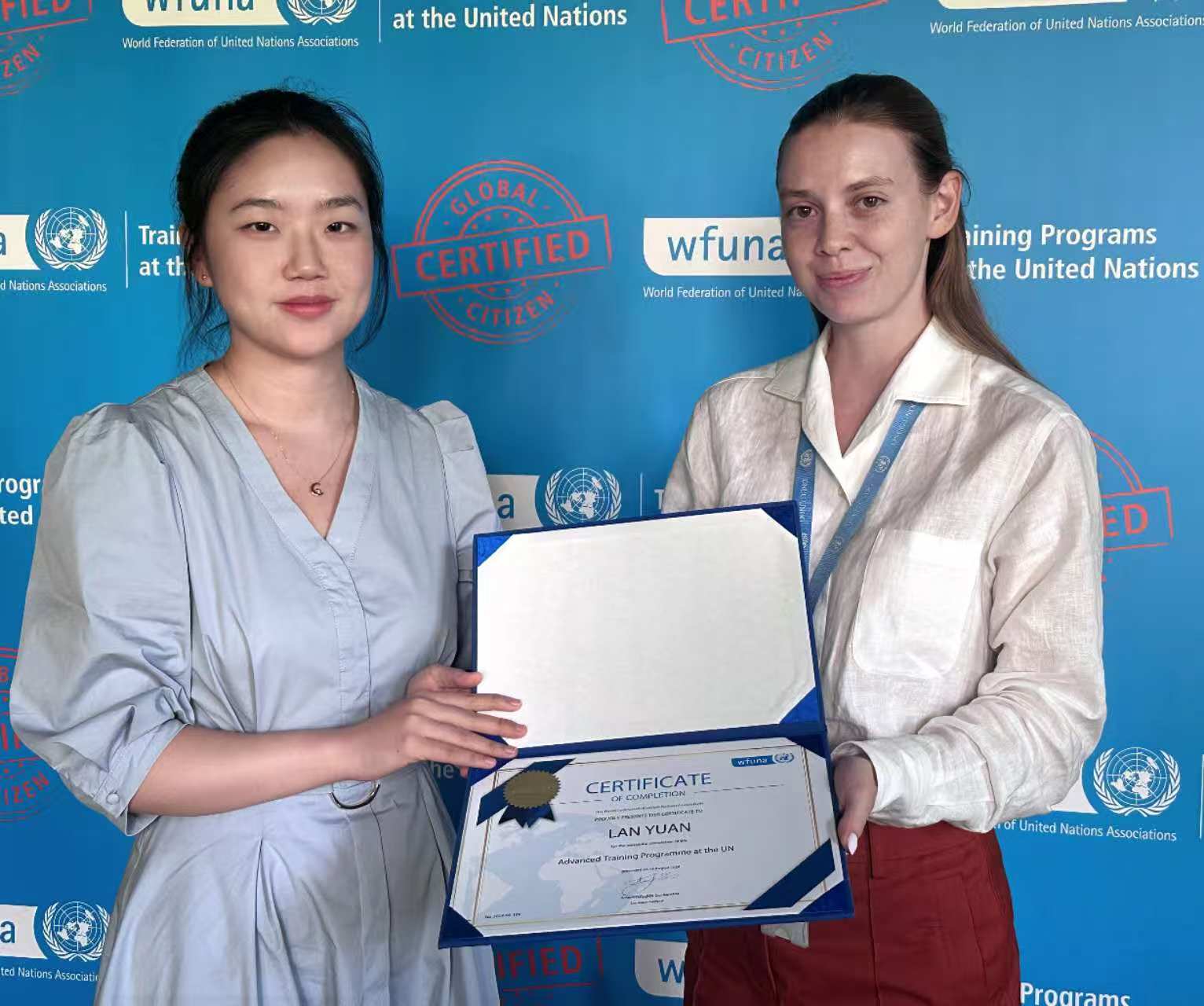 联合国官员颁发证书。