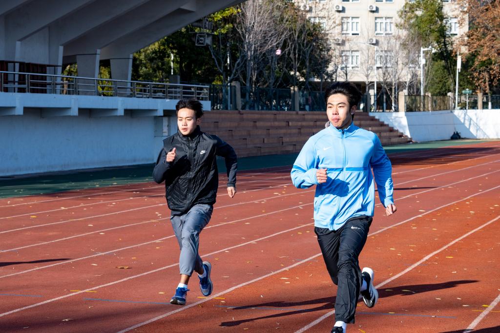 在大家熟知的视野里,原广辉和付焘玮总是一起出现在田径场,共同训练,互掐秒表计时,不断打磨配合。但在进入民大之前,他们轨迹迥异,在各自的青春宇宙里接受历练,各自成长。