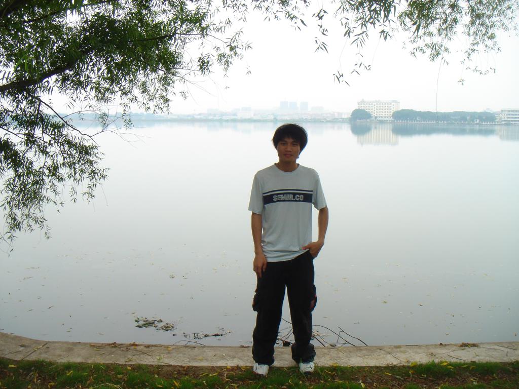 杨发达在南湖边留影。