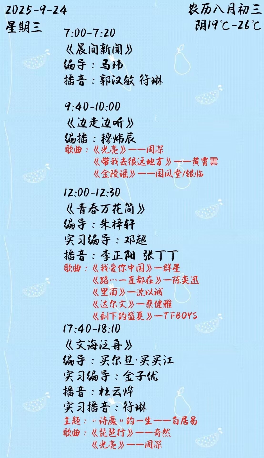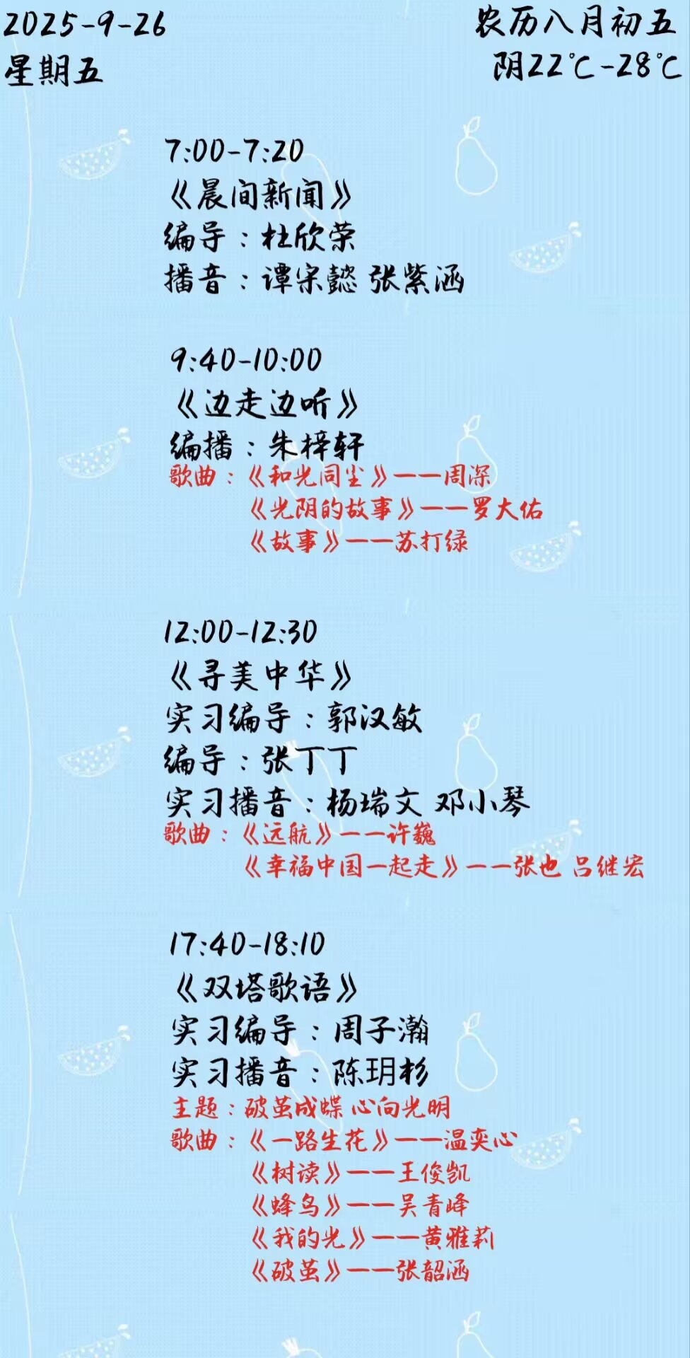 下一篇: 双塔之声2025年第二学期第2周节目单(2025.9.15-9.19)