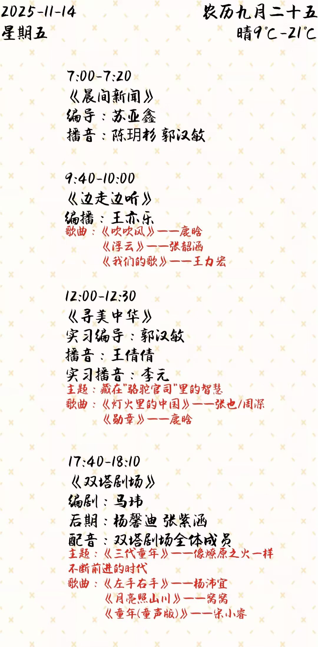 上一篇: 双塔之声2025年第二学期第11周节目单(2025.11.17-11.21)