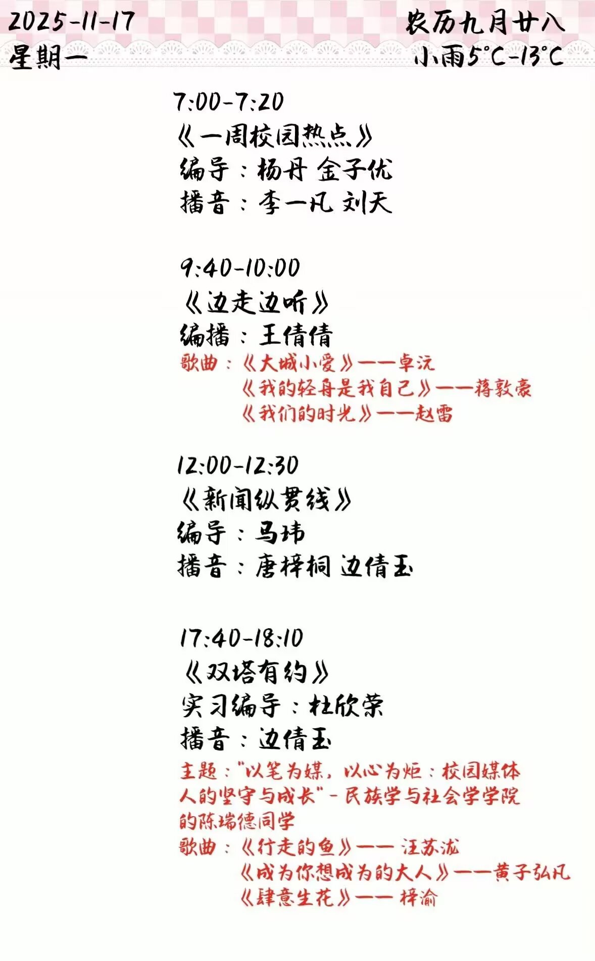 下一篇: 双塔之声2025年第二学期第10周节目单(2025.11.10-11.15)