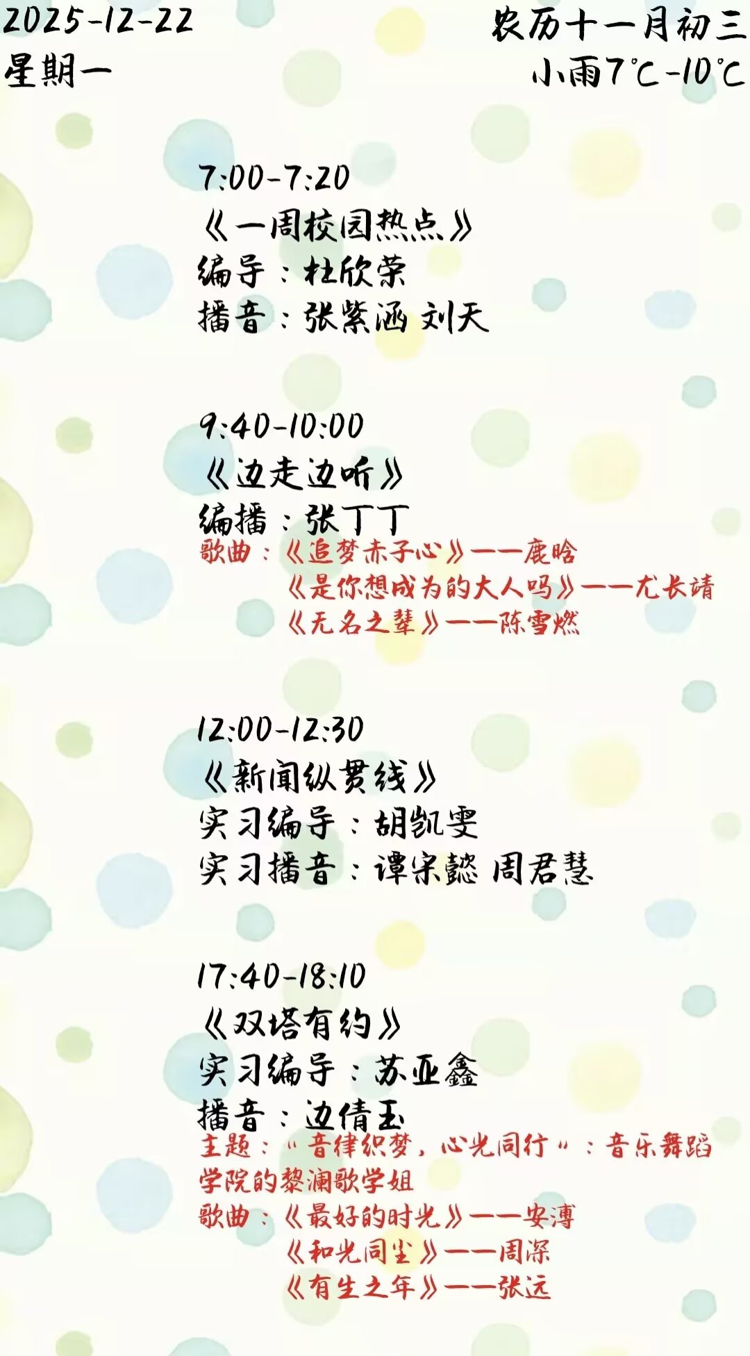 下一篇: 双塔之声2025年第二学期第15周节目单(2025.12.15-12.19)
