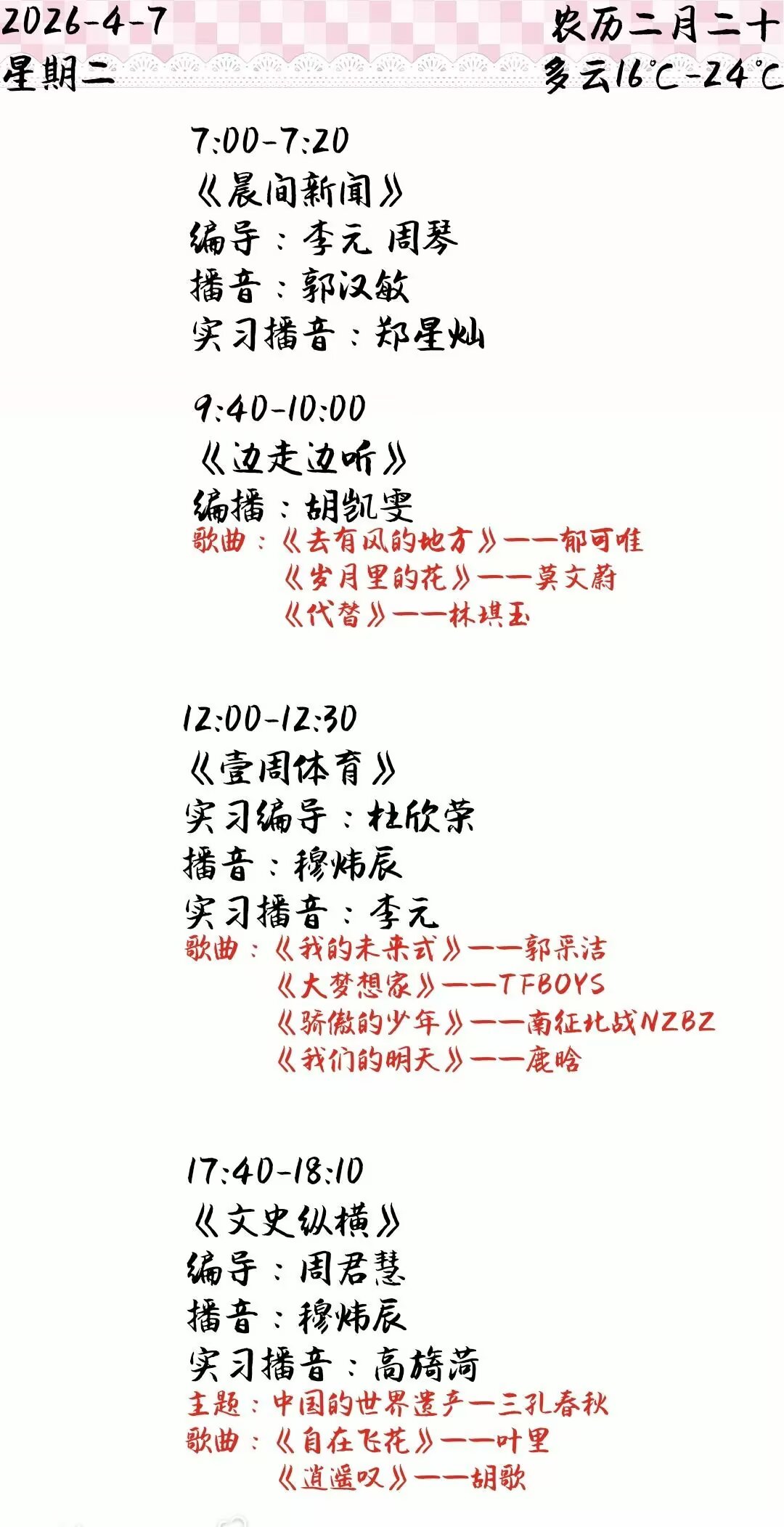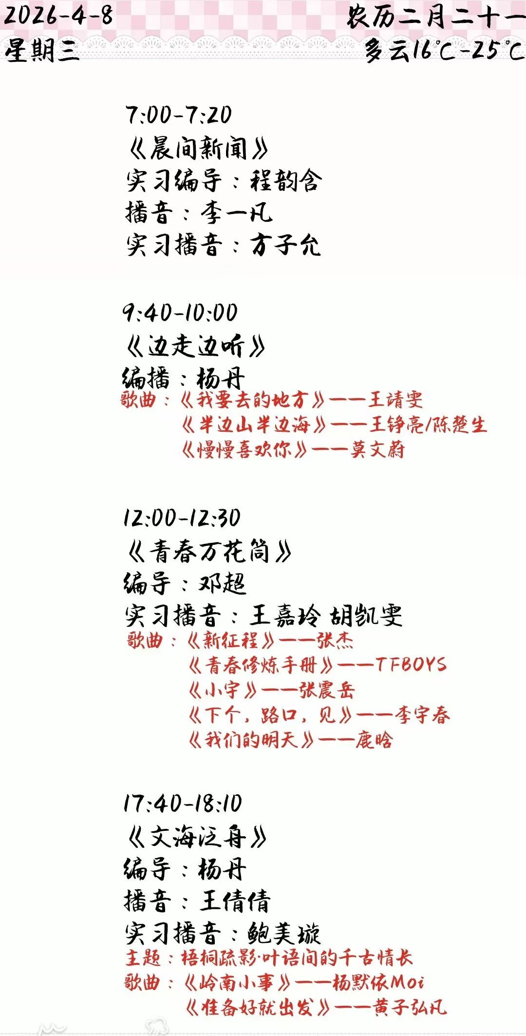 下一篇:双塔之声2026年第一学期第5周节目单(2026.3.30-4.3)