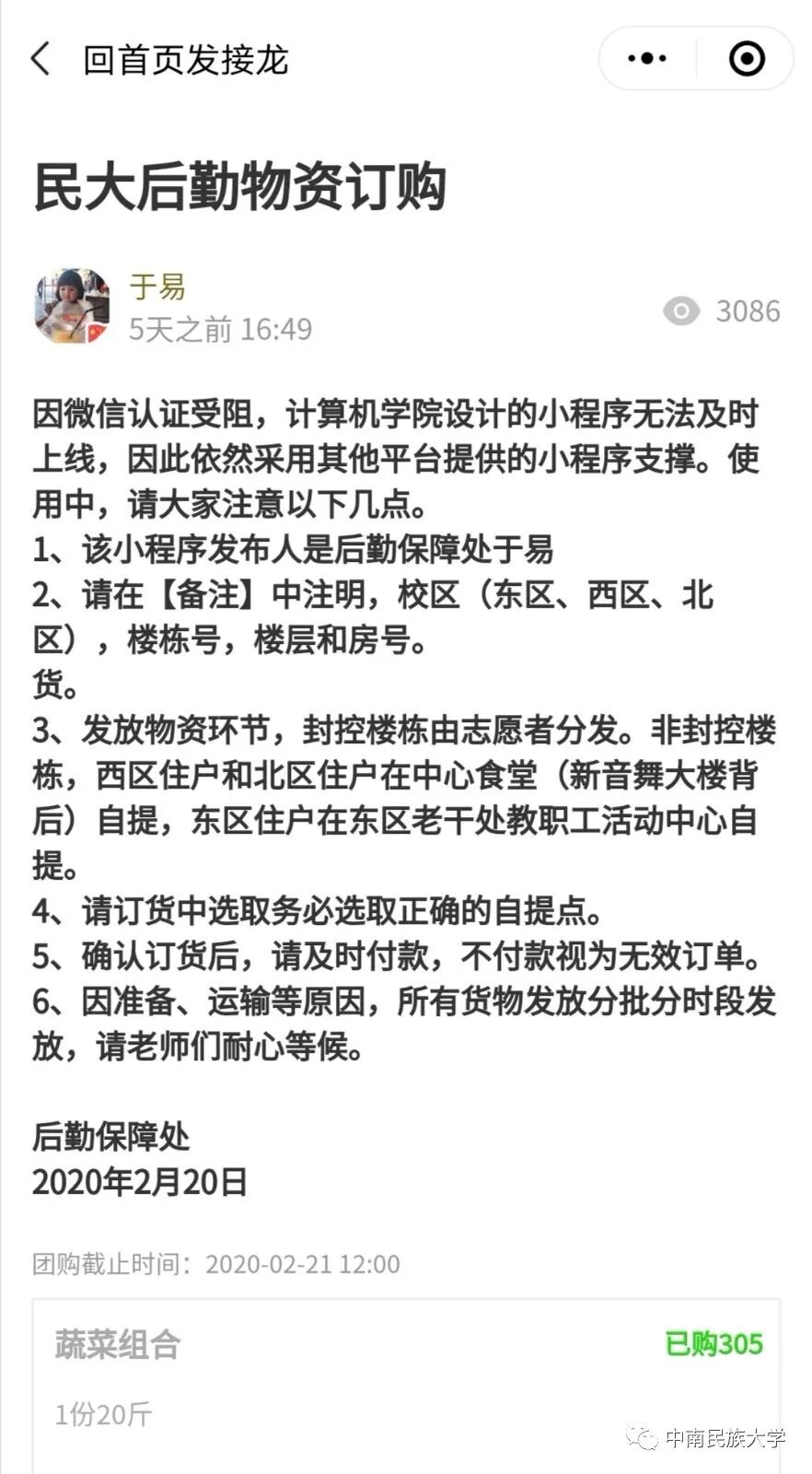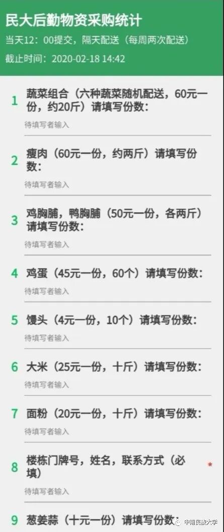 生活物资配送是封控期间广大社区居民最关心的事。2月17日下午,后勤保障处公布物资采购小程序,统计社区居民生活物资需求信息。
