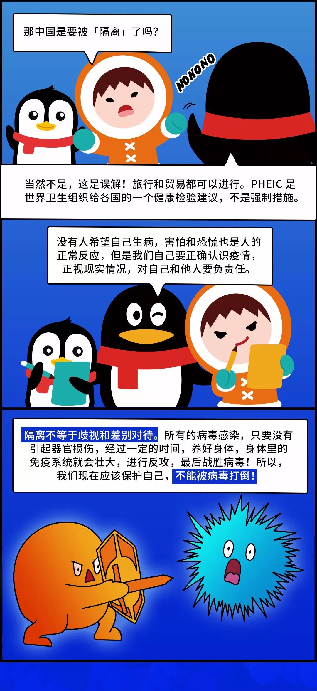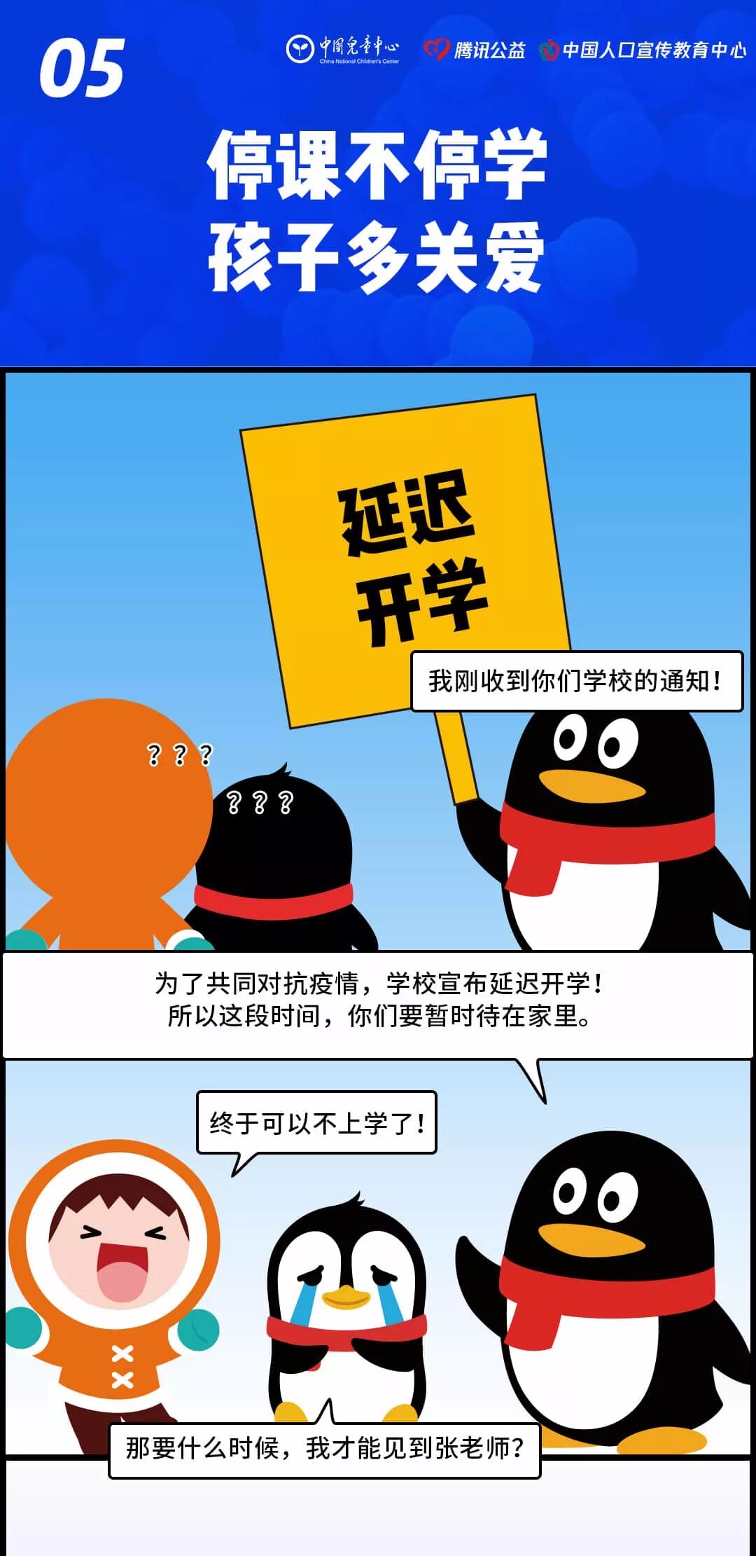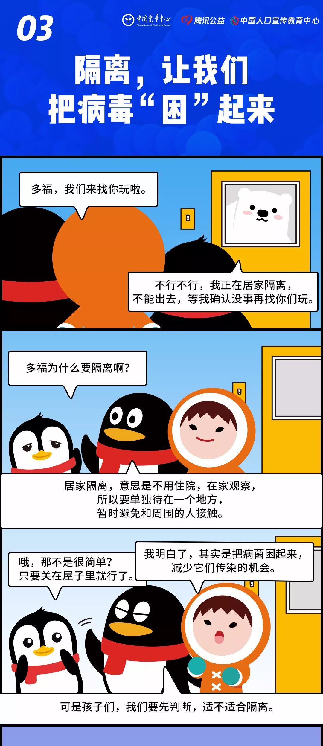 为此,腾讯公益创意策划,与中国儿童中心、中国人口宣传教育中心联合推出了一组儿童条漫,以通俗易懂、轻松愉快的方式介绍疫情,讲解病毒防治知识。