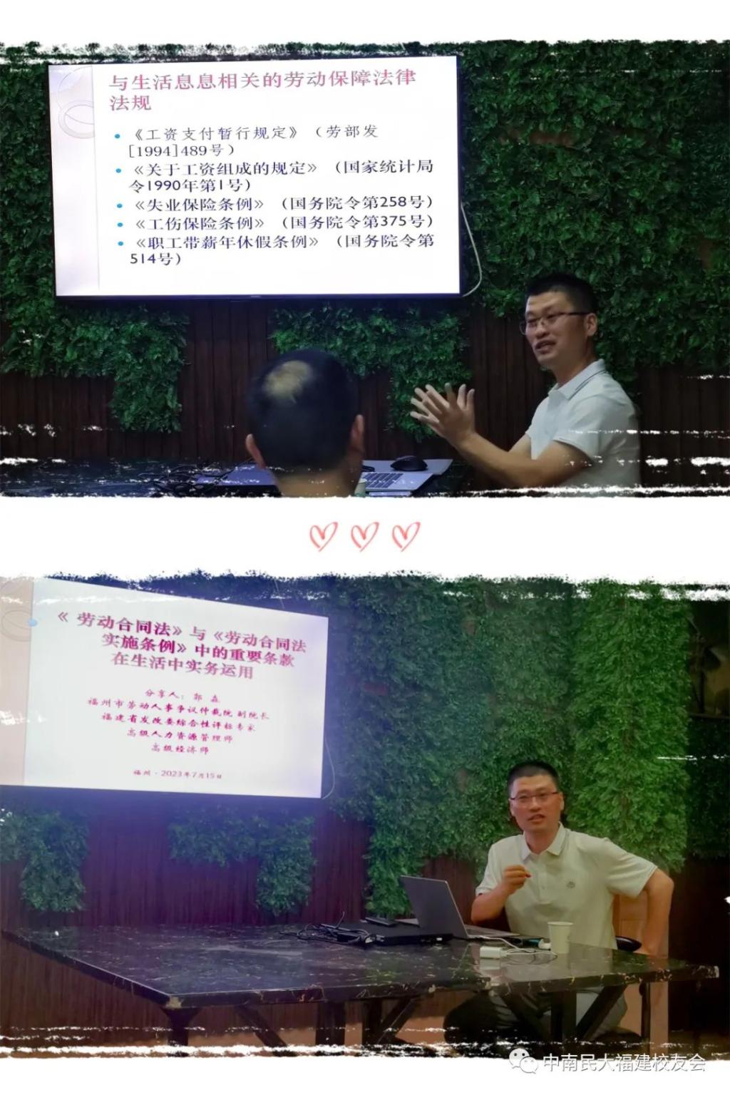 7月15日下午,中南民族大学福建校友会“南湖讲堂”一期——《劳动合同法》与《劳动合同法实施条例》中的重要条款在生活中实务运用,在福州市华侨新村27号楼校友之家顺利开讲啦!