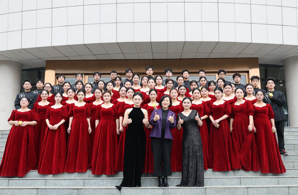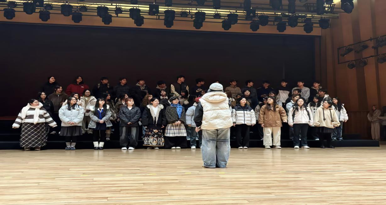 预科教育学院合唱佳绩的铸就,既源于队员们夜以继日的勤学苦练,更离不开各方同心协力的倾力护航。为兼顾学业与排练,队员们主动挤出所有空闲时间全力投入,排练中精益求精,反复纠音校准、打磨仪态,用赤诚与执着诠释着对合唱艺术的热爱。指挥学姐凭借专业素养悉心统筹,依据音色身形精准分配声部、排布队形,耐心细致地指导每一处演唱细节,以专业与热忱引领团队不断精进。