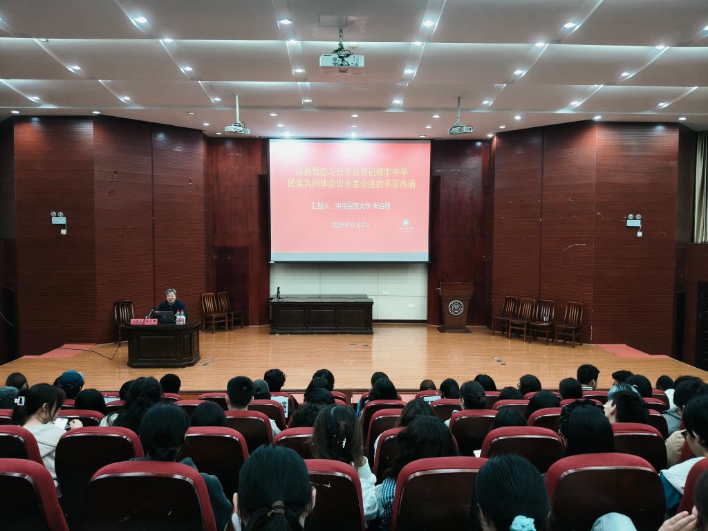 朱教授从历史纵深维度切入,结合古今典型案例,深刻阐明中华民族共同体意识是历史发展的必然,是各民族长期交往交流交融的结果。朱书记强调,铸牢中华民族共同体意识是新时代党的民族工作开创新局面的必然要求,具有重大现实意义和深远历史意义。随后,朱书记围绕铸牢中华民族共同体意识的实践路径展开深入阐释,提出明确要求。