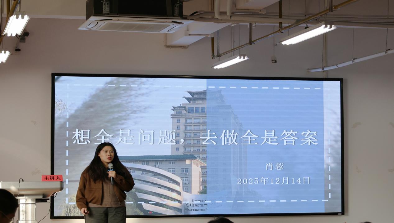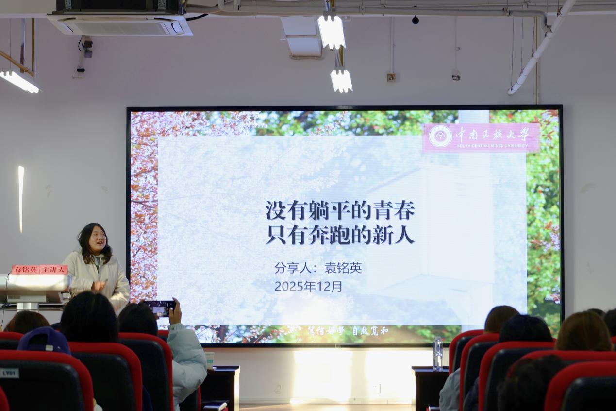 紧接着,民族与社会学学院的段海容学长聚焦专业选择与保研规划两大核心话题展开分享。段海容学长不仅连续三年斩获国家奖学金,主持的大创项目优秀结项,深度参与社科基金项目,更有论文登上《中国民族报》、主导拍摄的纪录片入选 “学习强国” 平台,各类竞赛奖项拿到手软。他提出,专业选择应锚定兴趣导向,将个人爱好转化为持久学习动力,进而实现深度的专业认同。针对文史类专业学习,他强调有效阅读积累的重要性,建议新生设定明确读书目标,并撰写结构化读书报告。谈及保研,他指出要提前明确方向定位,结合学校声誉、专业特色与区位优势等要素精准发力,同时详细解析了保研流程、准备工作及核心要求。他寄语新生,要重视实地考察、建立短期目标,专注当下、持续积累,以充实的自我静待机会降临。