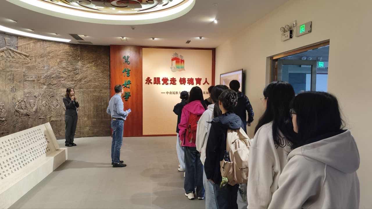 展柜中,初创时期的教学计划字迹泛黄,却清晰记录着各民族学子同上一堂课的初心;荣誉墙上,优秀校友事迹交相辉映,从学术前沿到基层一线,彰显着民大学子的责任担当。班导师们结合自身求学经历,为同学们解读“各族师生团结一心建校兴校”的珍贵往事:建校初期物资匮乏,各族师生轮流值守校舍、共享教学资源;改革开放后,学校率先开设民族文化交融课程,让各民族文化在课堂上碰撞共生。这些鲜活的故事,让“学校的发展史就是一部民族团结进步史”的认知深深扎根在同学们心中。