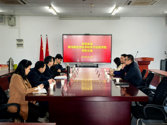 3月25日上午,黄冈师范学院李时珍中医药学院院长何峰、副院长张万举、党总支副书记王书珍等一行来院交流。座谈会在学院13203会议室举行,我院党委书记胡亚军、院长付海燕、党委副书记吴孔勇、副院长李小军、药学系黄先菊教授、化学生物学系徐婧副教授参加座谈会。