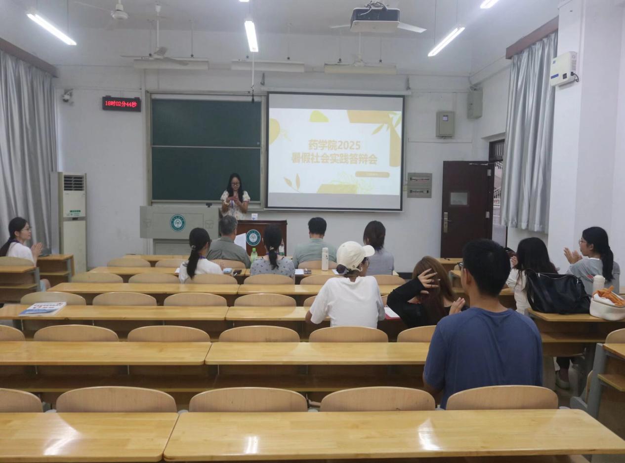 为深入学习宣传贯彻习近平新时代中国特色社会主义思想,全面贯彻落实党的二十大精神,充分发挥社会实践在加强和改进大学生思想政治教育中的重要作用,9月15日晚,药学院在11栋教学楼成功举办2025年大学生暑假社会实践答辩会。本次答辩会特邀药物分析系唐和斌教授、药物制剂系林亲雄副教授担任评委。
