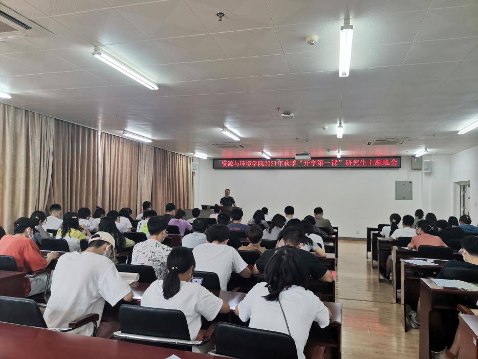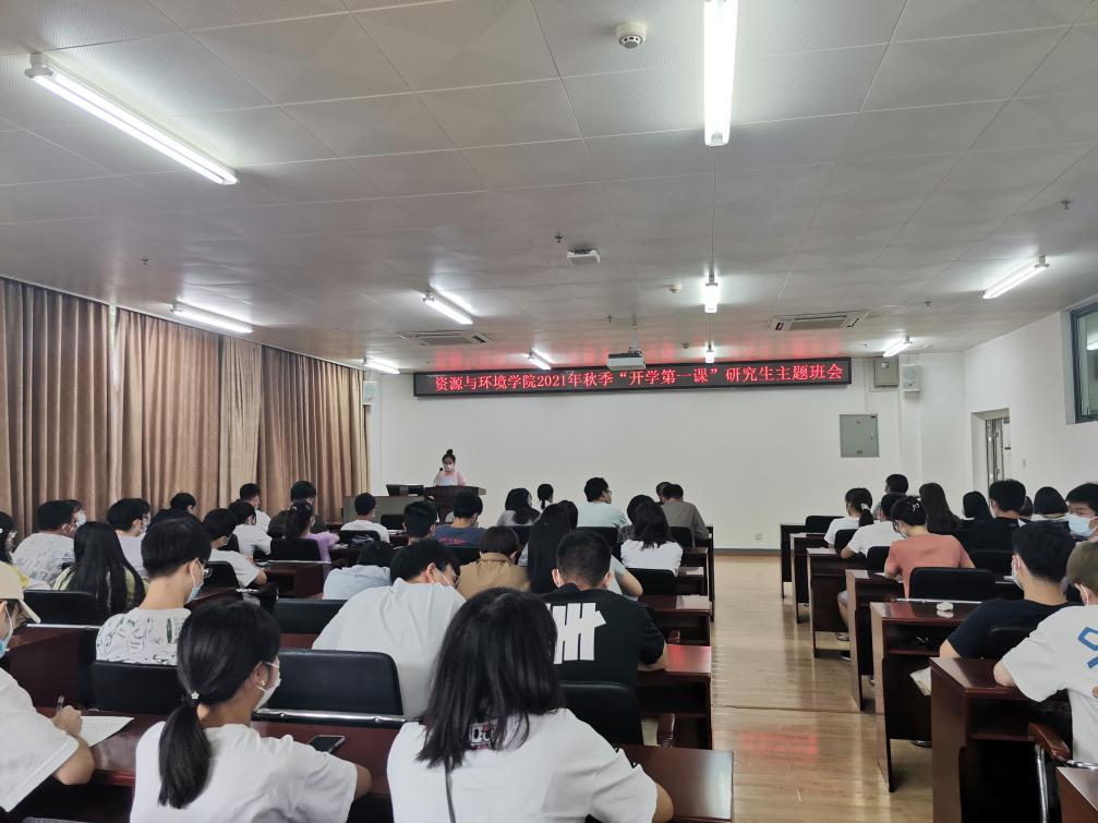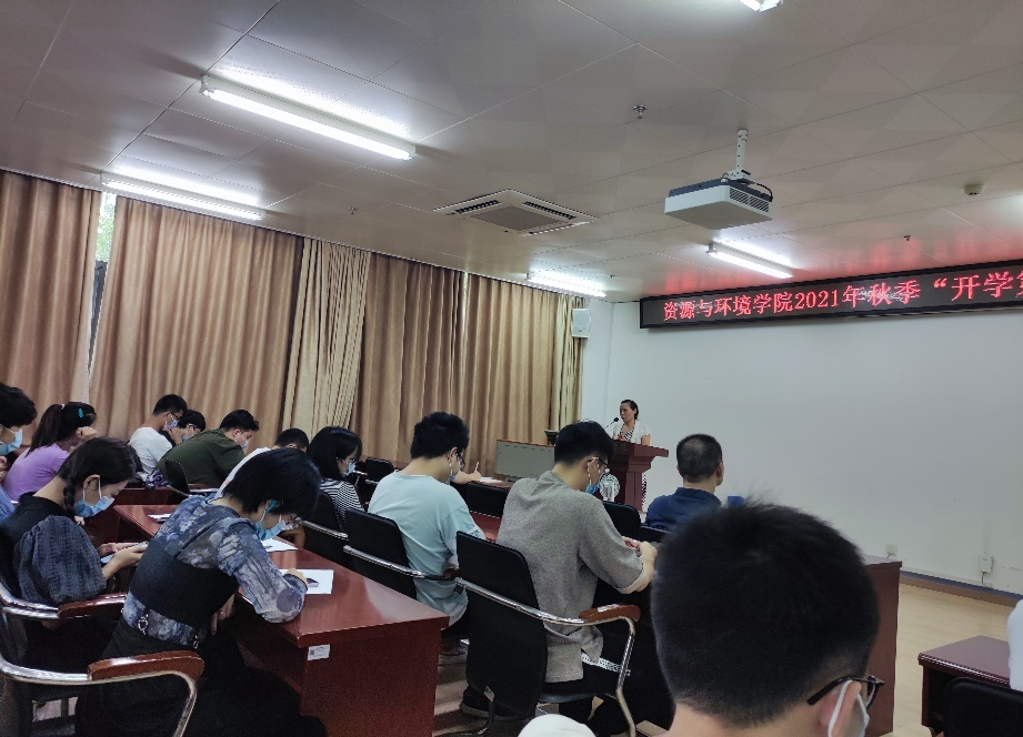 9月8日上午,资源与环境学院于13栋261报告厅召开2021年秋季“开学第一课”研究生主题班会。出席本次会议的有学院党委书记马国杰、副院长徐志高、研究生辅导员刘瑾及学院全体2019级、2020级研究生。