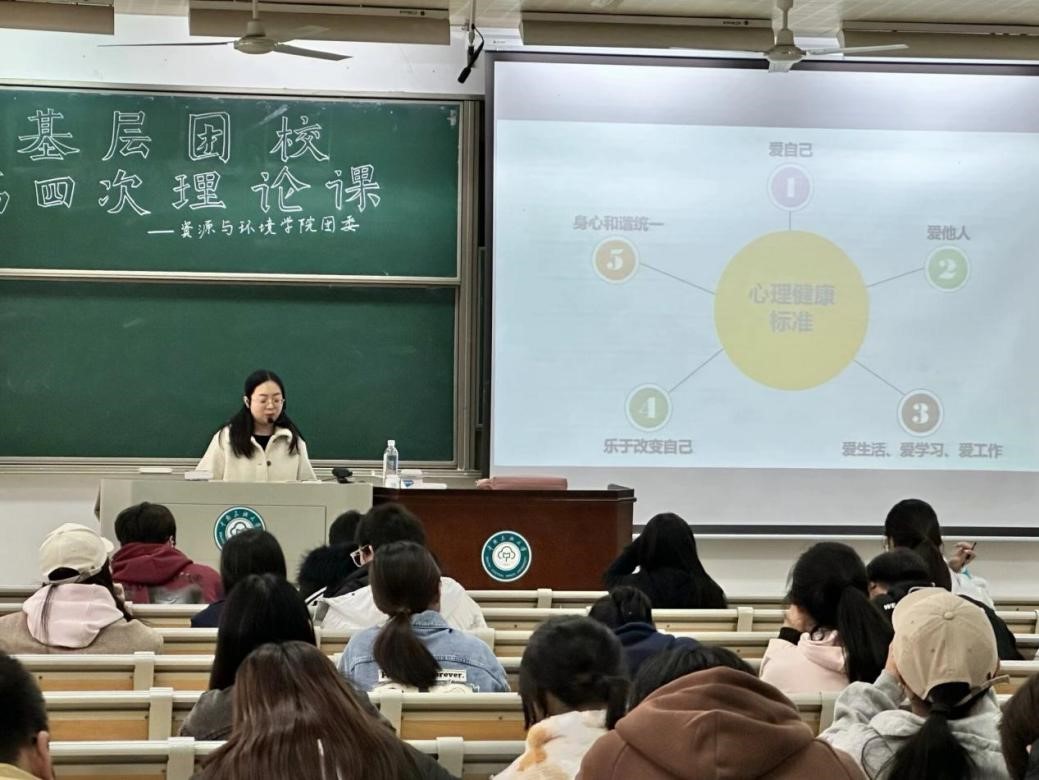 本次课程由校学生心理健康教育中心的李晨老师授课,资环学院组织部全体成员及百余名团校学员参与。