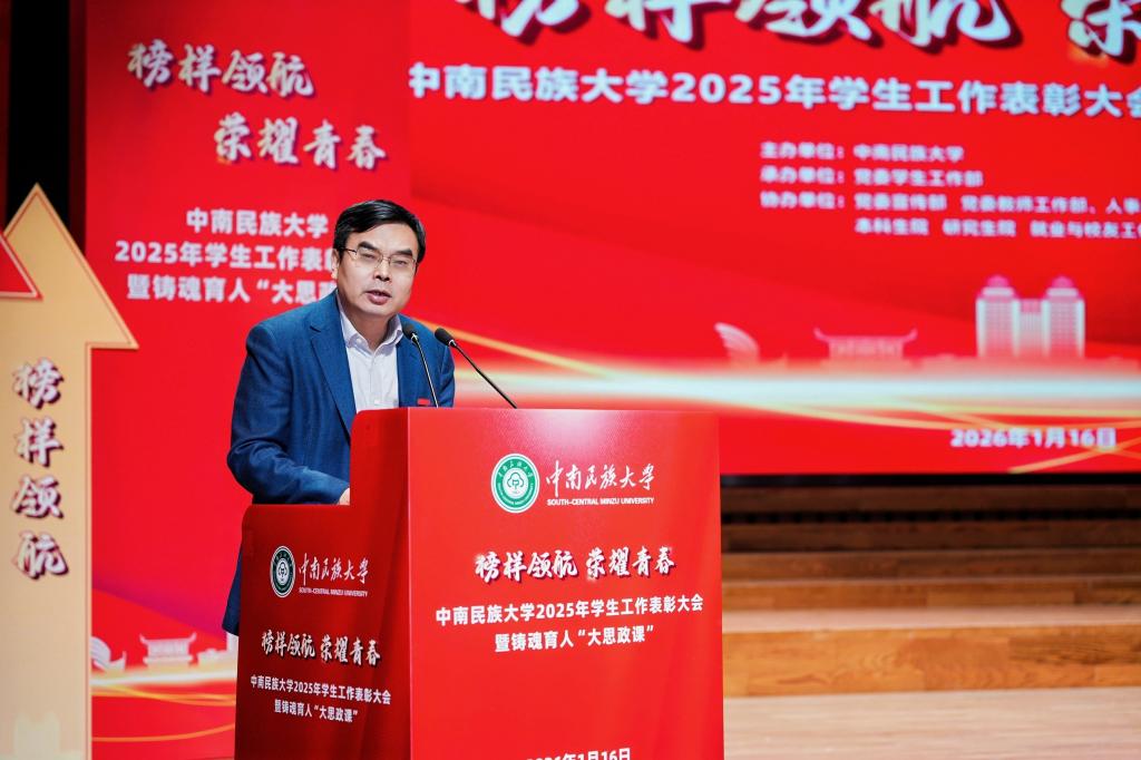 1月16日,学校举行2025年学生工作表彰大会暨铸魂育人“大思政课”。校领导徐业勤、刘义、李红燕、覃瑞、马玉堂,校党委常委蔡琼、各相关单位负责人、全体辅导员及获奖师生代表参会。