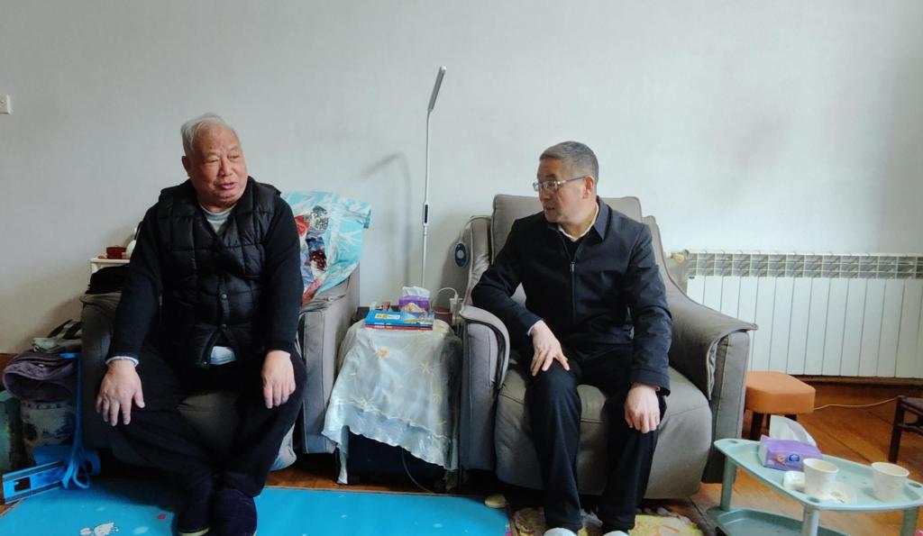 党委副书记、校长刘义来到老领导李步海家中,关切询问近期身体健康状况和日常生活情况。刘义对老领导们在不同历史时期为学校谋发展、定方向、打基础所付出的心血与努力表示崇高敬意。李步海首先感谢学校领导的关心慰问,对学校未来的发展前景充满信心,并表示将始终关注学校发展,全力支持学校各项工作。