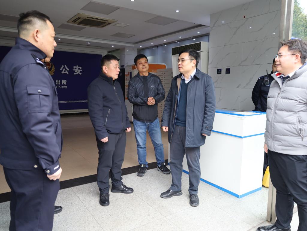 徐业勤一行首先来到洪山区关山街道办事处和铁箕山派出所,与关山街道党工委书记张拥军、武汉市公安局东湖新技术开发区分局副局长吴任军和铁箕山派出所所长文皓等深入交流。徐业勤代表学校对街道办和公安机关长期以来给予学校事业发展、校园安全稳定、周边环境治理等方面的大力支持表示衷心感谢,并向他们致以新春的美好祝愿。