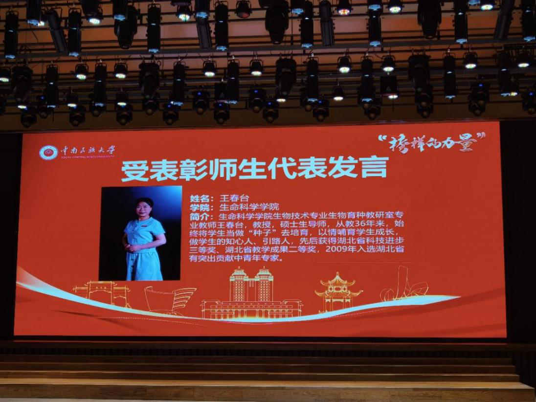 王春台教授获国家民委“三全育人”模范表彰。生科学院供图
